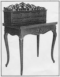 The growth and decline of Galusha's business are chronicled in the ledgers of R.G. Dun and Co., which in the Nineteenth Century established business credit ratings, and, in the Troy city directories, provided information on the number of men employed by Galusha. From the late 1830s through the early 1850s, Galusha's business grew steadily. He had eight workers by 1840 and 15 by 1846. His 1857 credit rating noted, "Good as gold for all you can sell him." When Galusha arrived in Troy, the city was positioned for rapid industrial and commercial growth. A late Eighteenth and an early Nineteenth Century economy based on agriculture had provided the money for investment in transportation systems and iron and textile industries. In addition, the Hudson and Mohawk Rivers and the Erie Canal provided easy passage to and from other markets. By the mid-Ninetheenth Century-- Galusha's most prolific period-- Troy's economy was booming. Right: Desk, circa 1845-1860. |