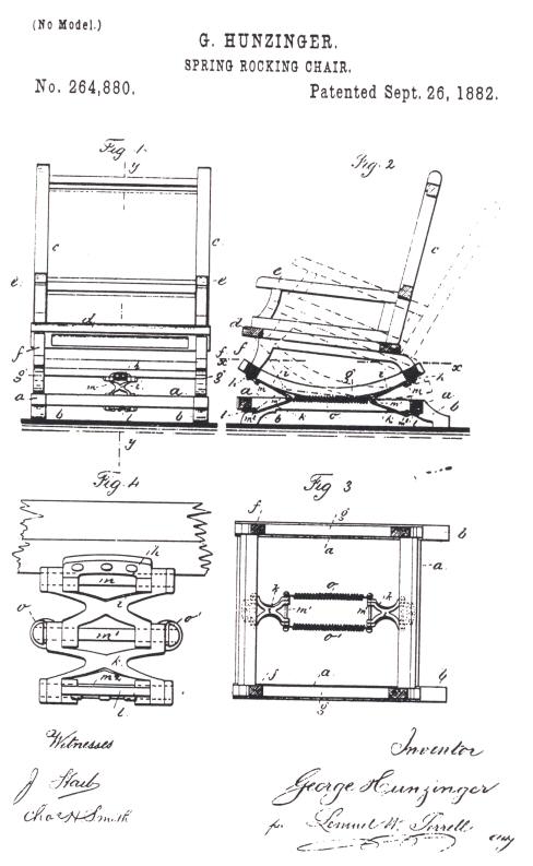 Hunzinger's spring mechanism and elaborate styling were unique.