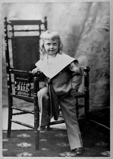 We have several portraits using the second chair. Usually ladies (whose enormous dresses nearly hid it) and children used this one. It isn't imposing like the first. We think it is just right for this young sailor!
